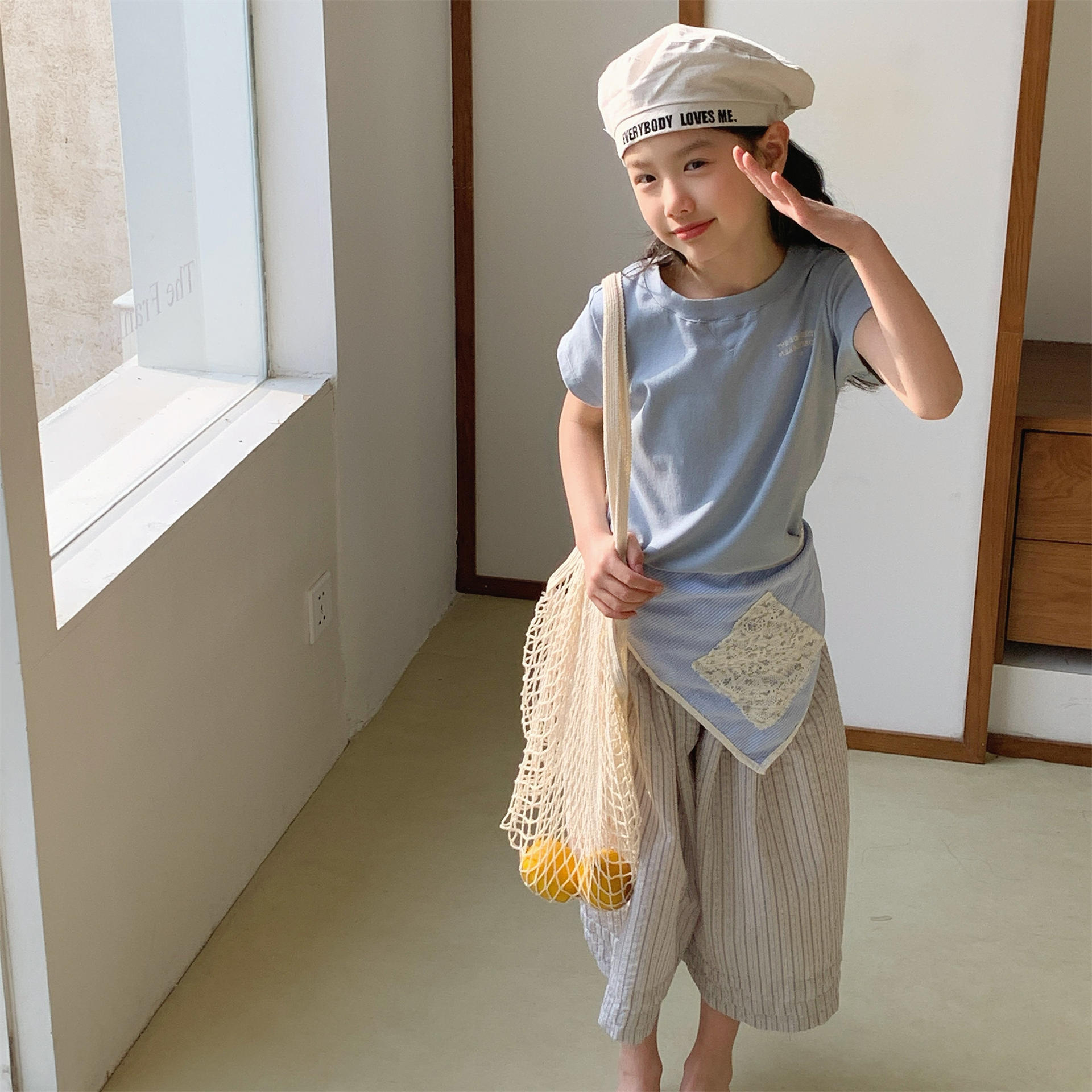 男女童休閒短T (花灰/米/藍)