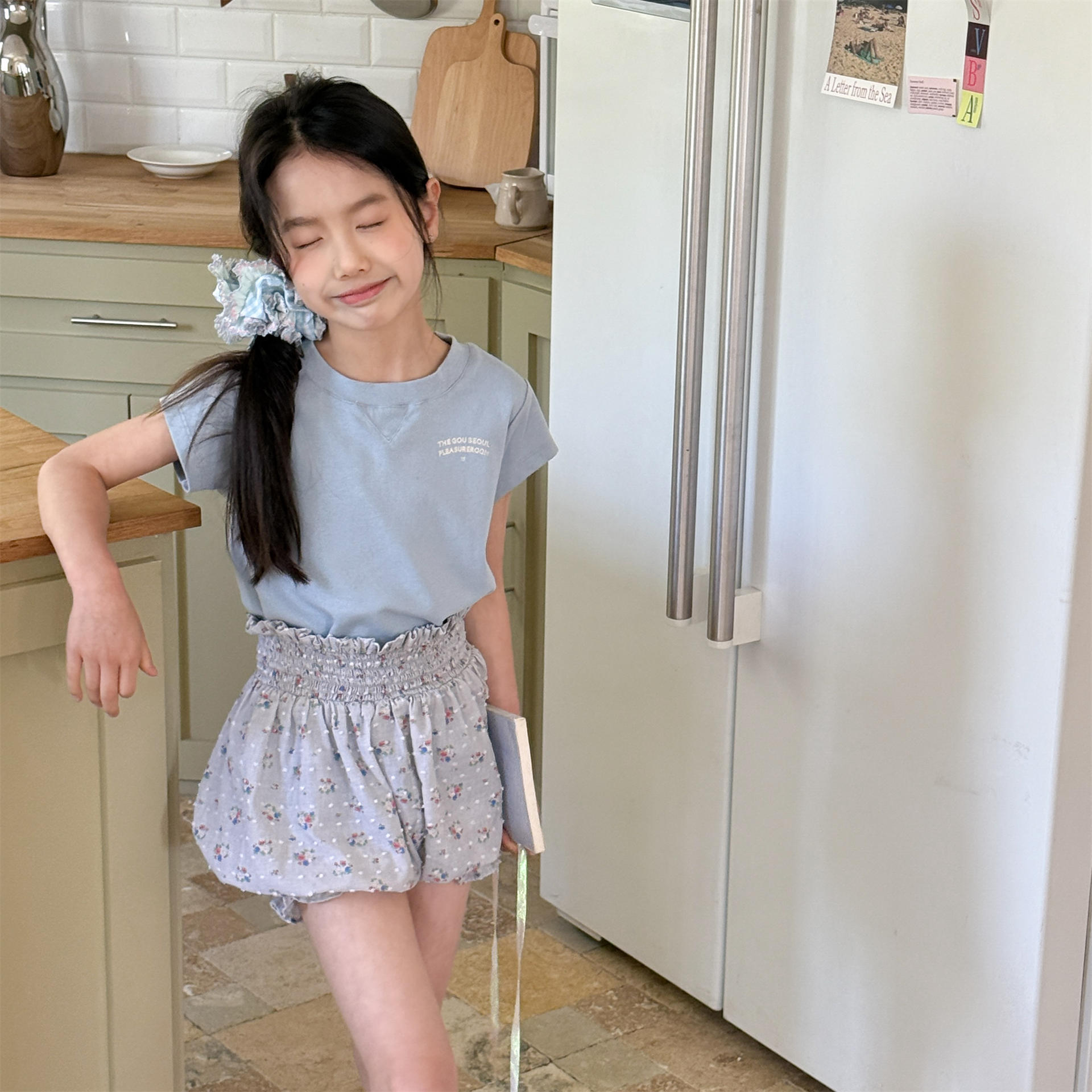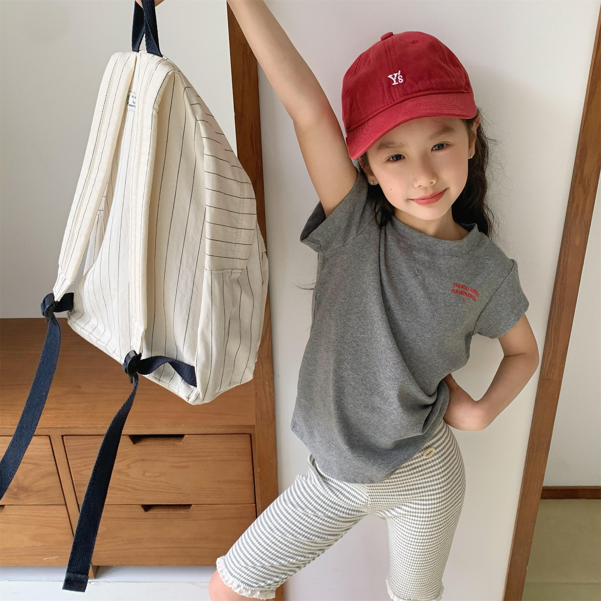 男女童素色短袖口短T (花灰/淺藍/米)